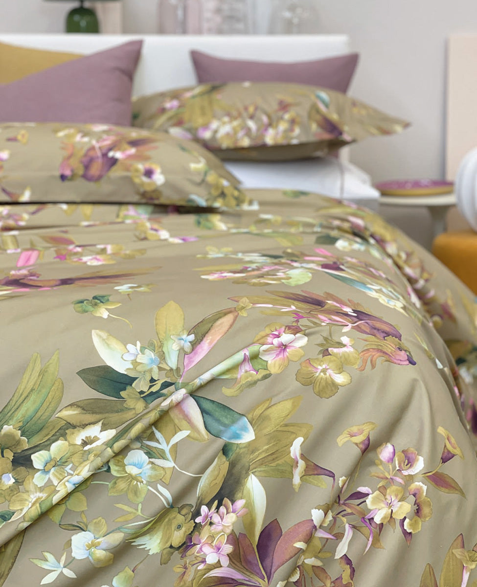 Completo Copripiumino Matrimoniale in Raso di Cotone MIRABELLO - Abstract Flower