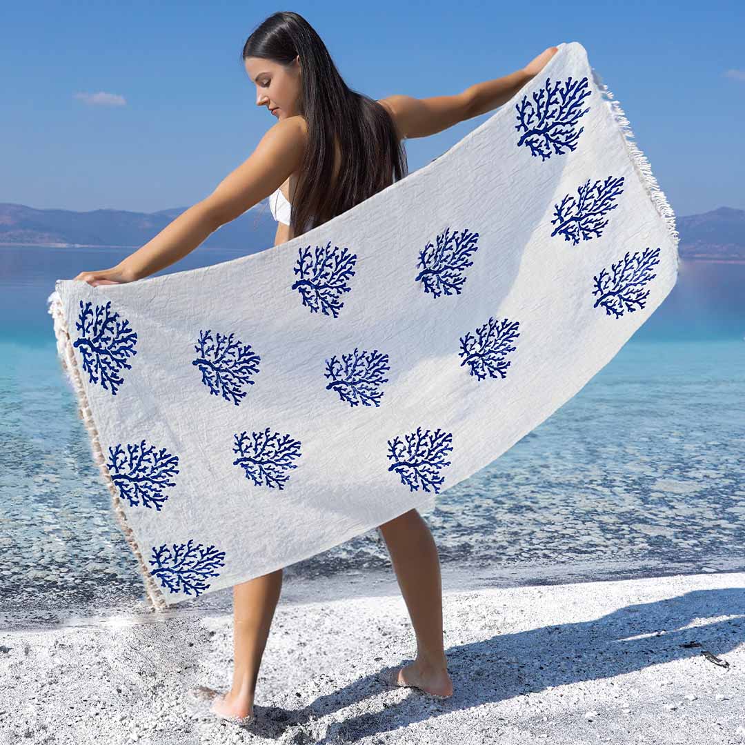 Telo mare in Peshtemal 100% Cotone - Corallo Blu