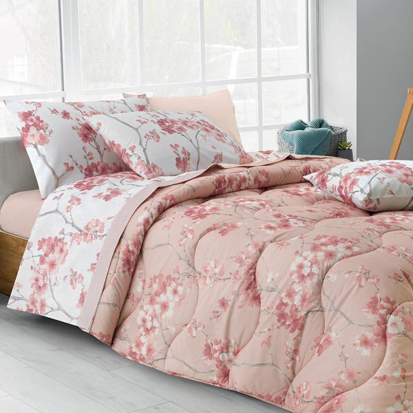 Completo Copripiumino Matrimoniale in Raso di Cotone MIRABELLO - Winter Garden Rosa