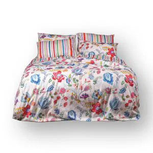 Completo Lenzuola Copriletto Matrimoniale MIRABELLO Emporium - Summer Poppies Bianco