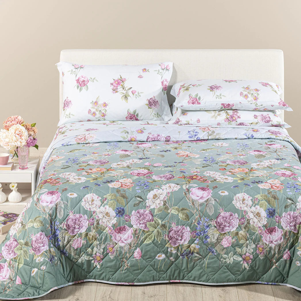 Copriletto Trapuntato in Cotone CALEFFI Diletto - Giardino Romantico Giada