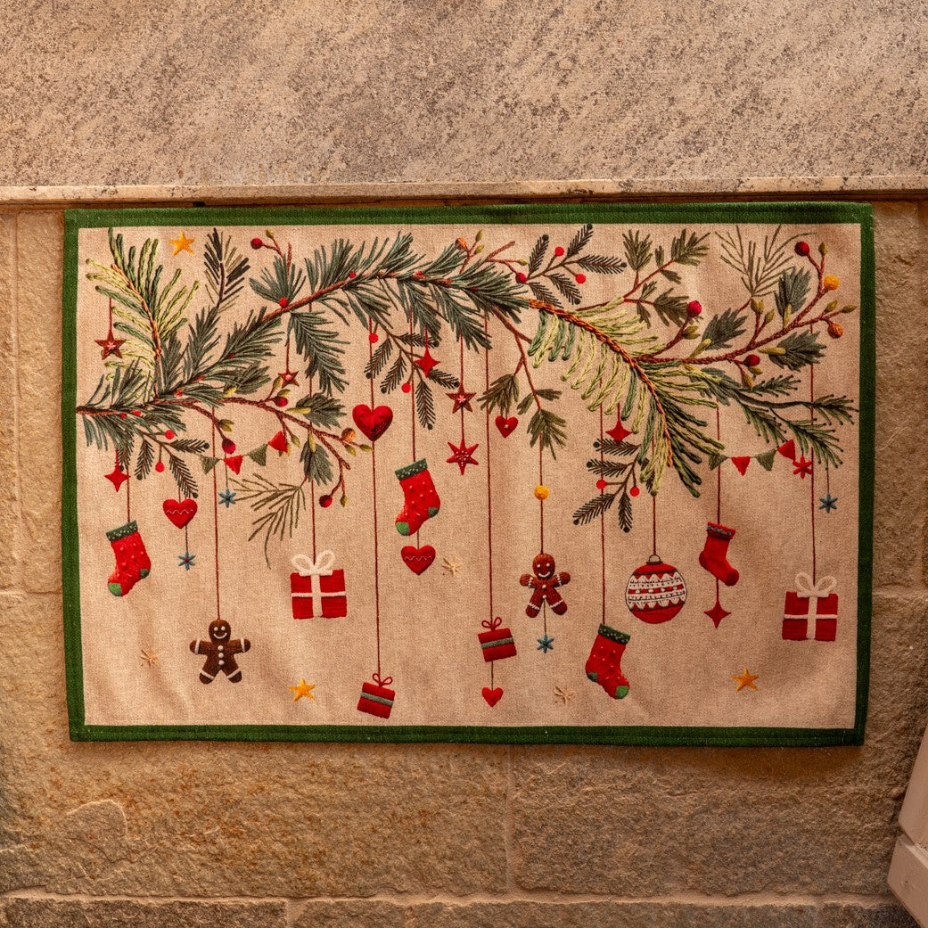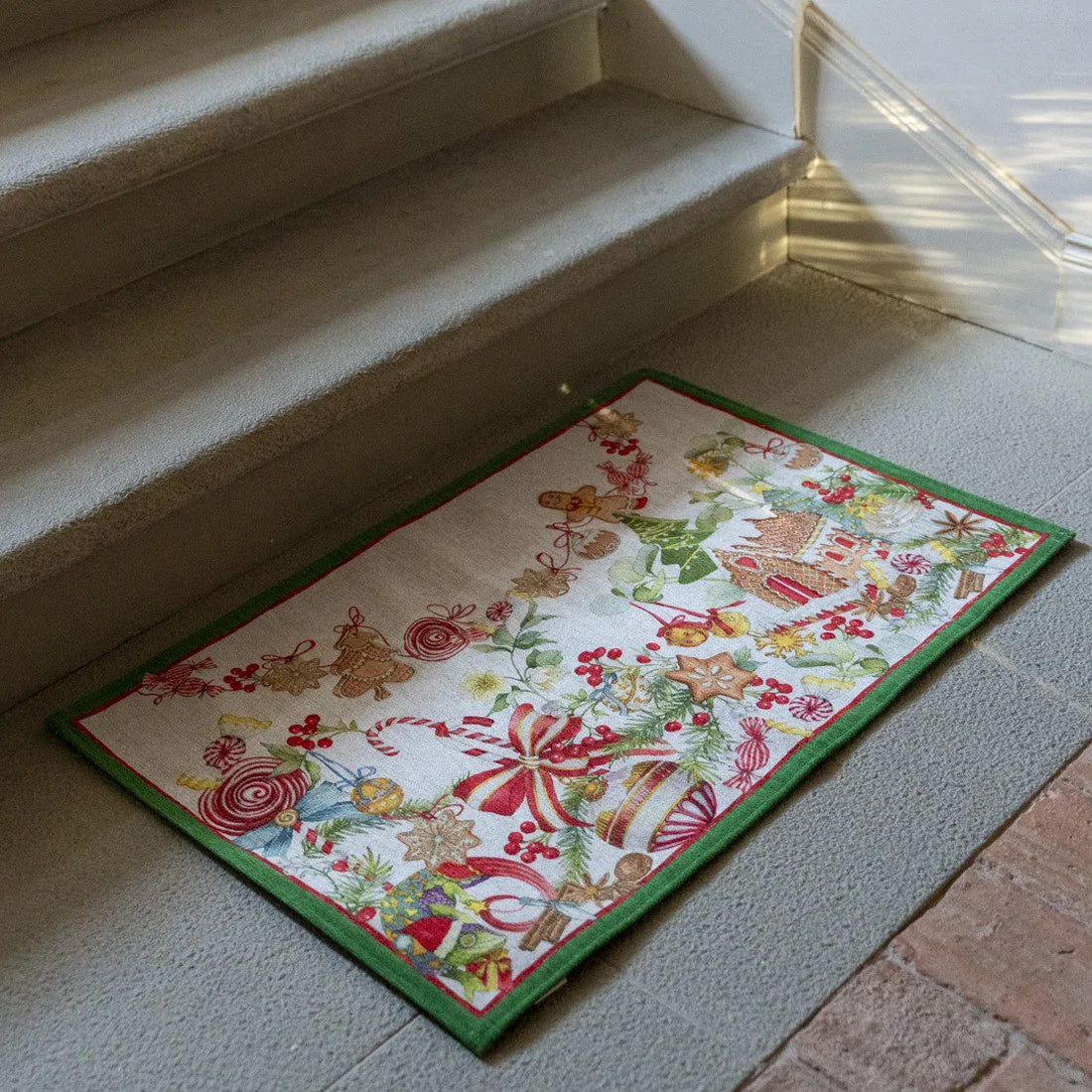 Porta la magia del Natale in casa con il tappetino decorativo Tessitura Toscana Telerie! Realizzato in...