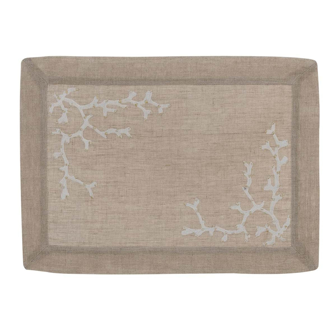 Tovaglietta in cotone della Collezione Sciacca con stampa marina su base tortora e riquadrata con...