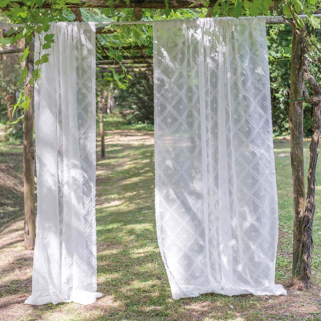 Tenda da parete in tulle con ricamo geometrico. Le tende della collezione Ammirazione di Blanc Mariclò sono semplici...