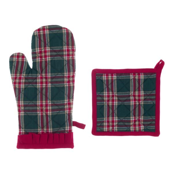 Set cucina composto da un guanto da forno e una presina a tema tartan firmati...