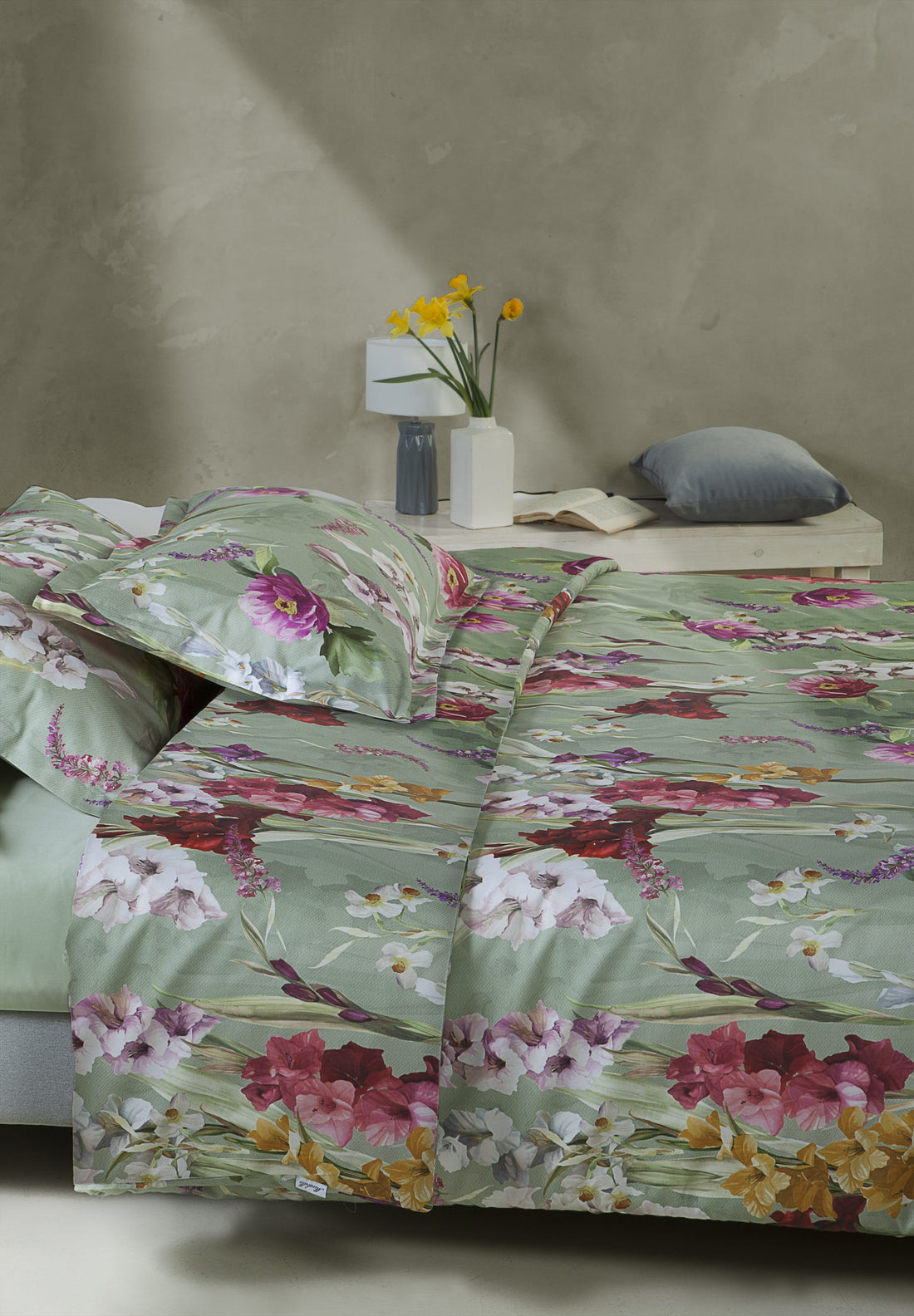 Parure Copripiumino MIRABELLO Emporium - Charming Flowers fondo Verde