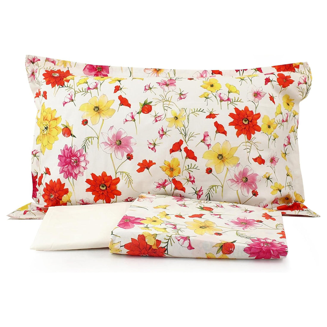 Completo Lenzuola Copriletto Matrimoniale MIRABELLO Emporium - Summer Poppies Bianco