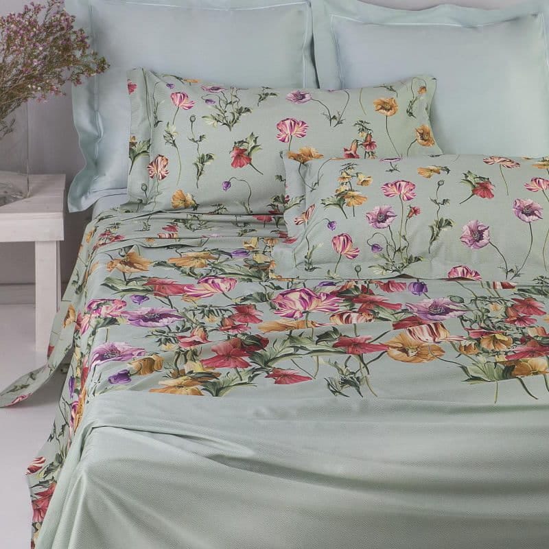 Completo Lenzuola Copriletto Matrimoniale MIRABELLO Emporium - Poppies Verde