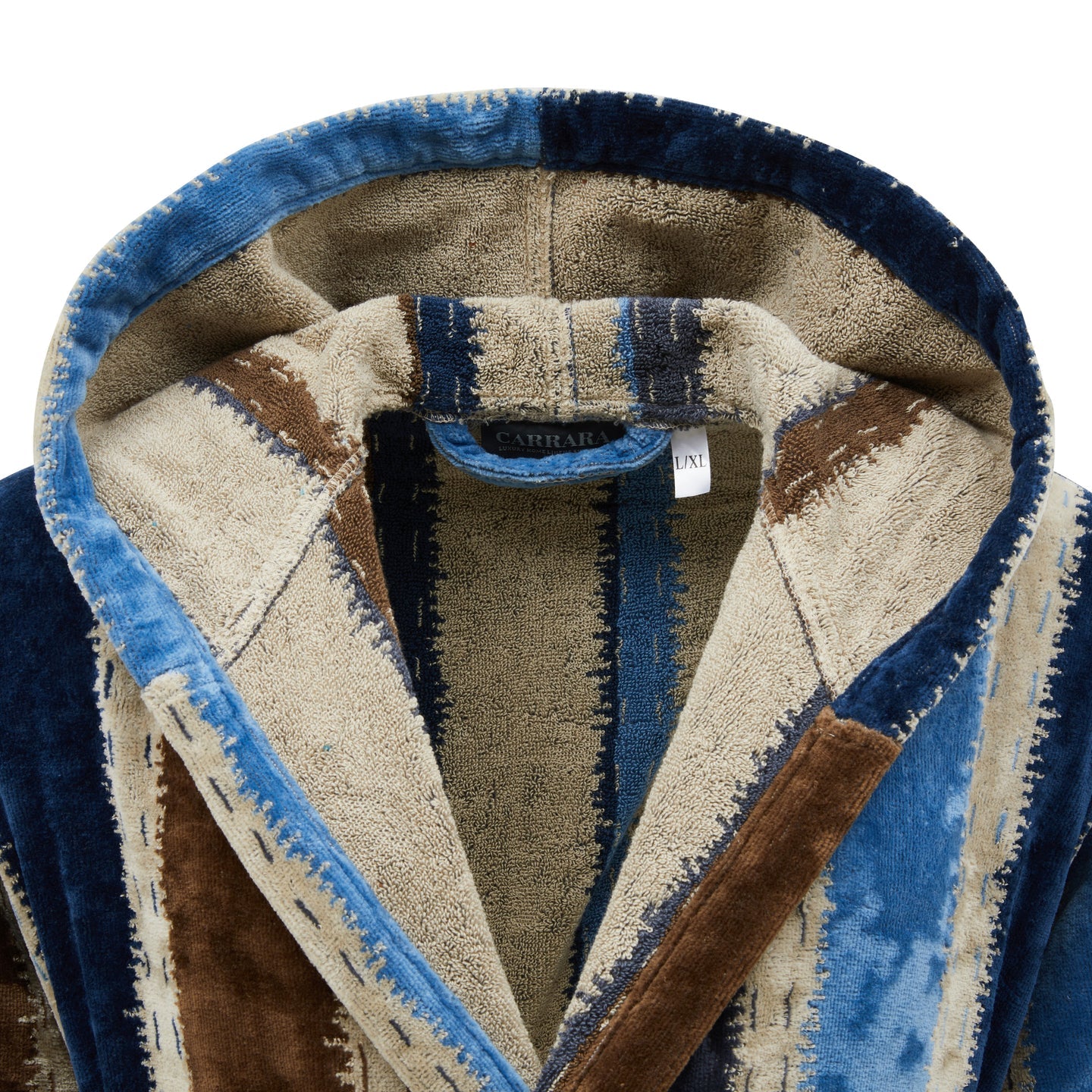 L'accappatoio unisex di Carrara è realizzato in morbida spugna, assorbente all'interno ed effetto velour all'esterno. Con i suoi particolari accostamenti di colore costituisce un raffinato e allegro dettaglio che darà un tocco di eleganza e di novità al tuo bagno. Sono leggeri e comodi, dotati di cappuccio, cintura e tasche. Realizzato da Carrara, sinonimo di materiali di qualità, è morbidissimo e lascia al tatto una sensazione di comfort e benessere.