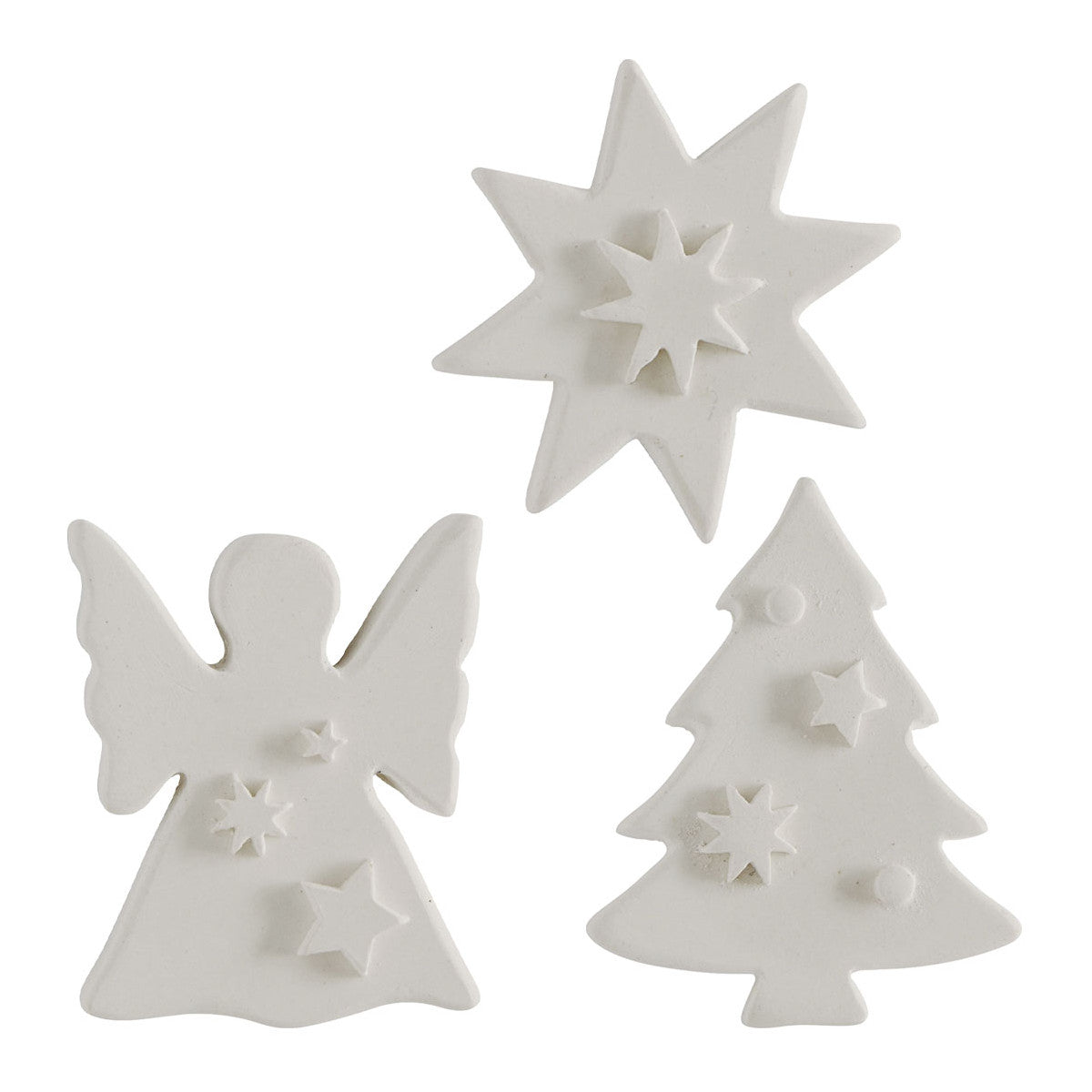 6 decorazioni in gesso (2 Alberi di Natale, 2 Angeli e 2 Stelle), fragranza Nuit d'Ambre