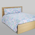 Completo copripiumino in percalle di cotone con stampa floreale. Il percalle di cotone è realizzato con filati di cotone molto fine ma più compatto e pettinato, per renderlo setoso al tatto.