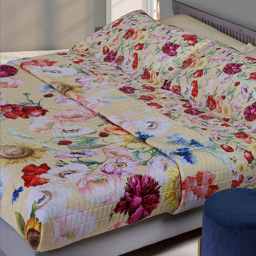 Completo Lenzuola Copriletto Matrimoniale MIRABELLO Emporium - Summer Poppies Giallo