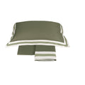 La collezione Sentieri indaga il tema della tinta unita, versatile in innumerevoli declinazioni estetiche e impreziosito da una triplice bordatura a fasce tono su tono.