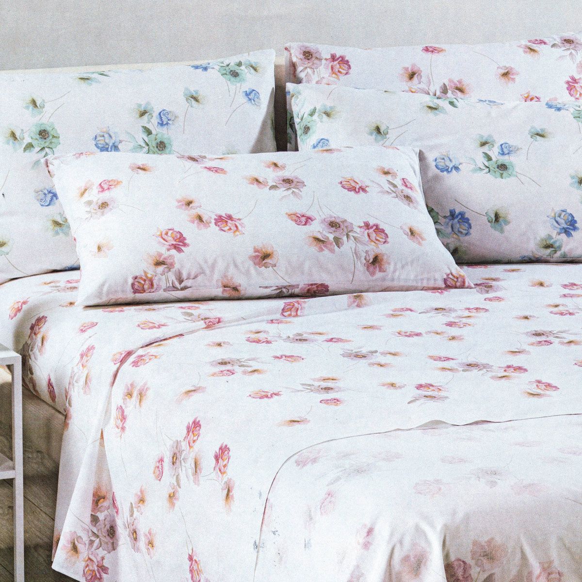 Realizzato in 100% cotone di alta qualità, offre una piacevole sensazione di freschezza e comfort naturale a contatto con la pelle.La fantasia floreale acquerellata su fondo bianco luminoso dona luce e armonia alla camera da letto, creando un’atmosfera romantica e rilassante.