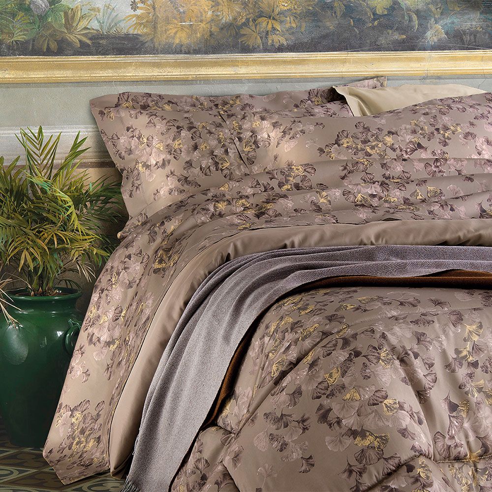 Balade Sheet Set - The oriental suggestion of ginkgo leaves with Balade, the double bed set from the Impero collection by Somma 1867. Made of printed pure mercerized cotton satin 120 threads/cm², it is composed of a printed sheet, a pair of three-piece printed pillowcases Solid color shuttlecocks and undersheet with 175x200 corners. Can be coordinated with Jewel loose satin fabric. The choice of colors and finishes, the preciousness of the texture combined with the caress of the satin determine the superlative quality of unique home linen products by Somma 1867. Produced entirely in Italy and Oeko-tex certified.