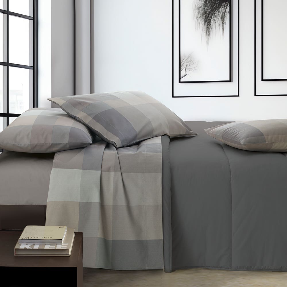 Un originale pattern geometrico e tutta la qualità Gabel 1957: il completo lenzuolo Liam dona alla tua camera da letto uno stile allegro e frizzante. Stampato su tela di puro cotone da 58 fili al cm², è morbido, traspirante e piacevole a contatto con la pelle grazie alla naturale azione termoregolatrice della fibra.