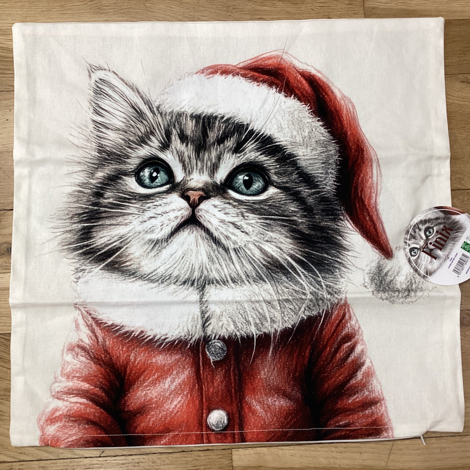 Aggiungi un tocco di allegria alle tue decorazioni natalizie con il Copricuscino Finix 45x45 cm. Realizzato in 100% cotone e stampato in digitale, presenta buffi gattini vestiti da Babbo Natale, perfetti per portare simpatia e spirito festivo in ogni angolo della casa. Morbido, resistente e ideale per decorare divani, poltrone o camere con un tocco tenero e divertente.