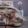 Copriletto matrimoniale trapuntato in puro raso di cotone stampato con splendido motivo floreale.