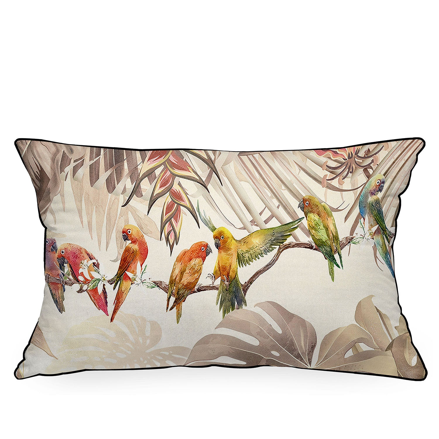 Dona un tocco di eleganza tropicale ai tuoi ambienti con il Cuscino arredo rettangolare in velluto Savana 03 di Casa Anversa. Realizzato in morbido velluto stampato con delicati uccellini esotici, aggiunge colore e raffinatezza a divani, letti o poltrone.