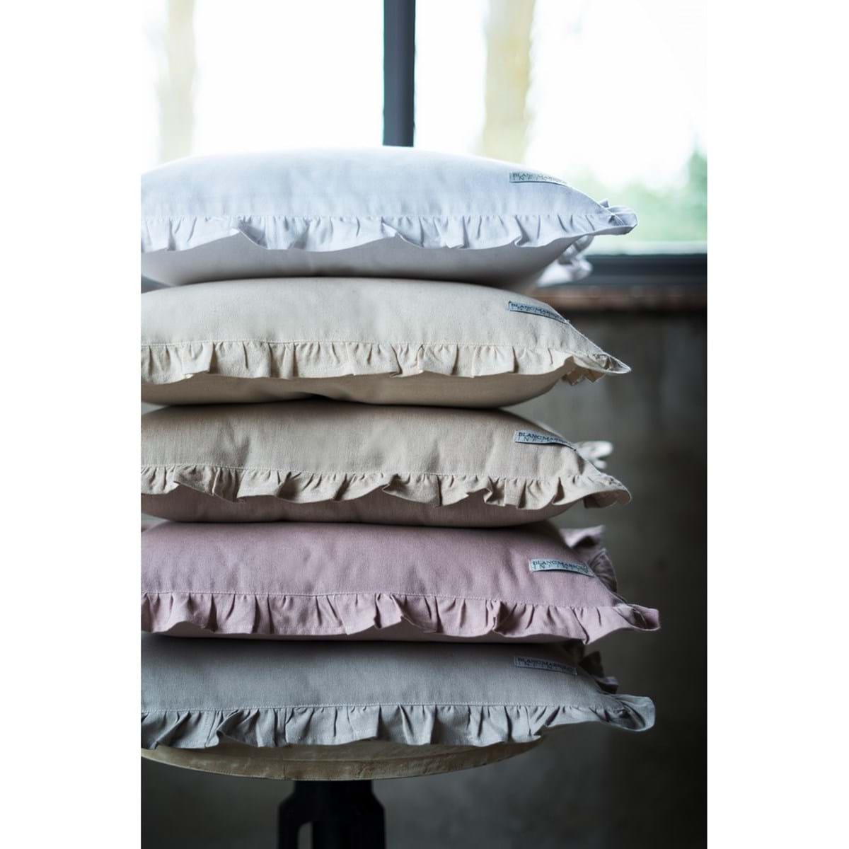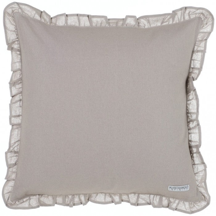 Square cotton cushion with pretty galettes on all sides from the Infinity Collection by Blanc Mariclò. It is perfect for giving a romantic touch to your rooms, from the living room to the bedroom.