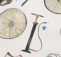 Una fantasia originale e dinamica con biciclette colorate su fondo chiaro, perfetta per dare un tocco allegro, moderno e raffinato alla camera da letto.