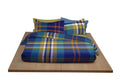 Parure Lenzuola Bossi tinto Filo con motivo scozzese, composto da Lenzuolo sopra e da due federe. Abbinabile con il lenzuolo sotto con angoli tinta unita Bossi Color acquistabile separatamente.