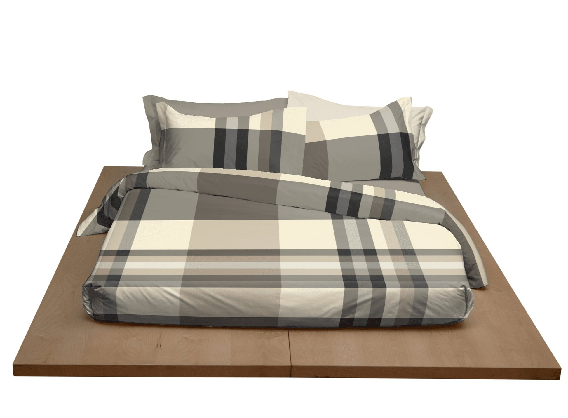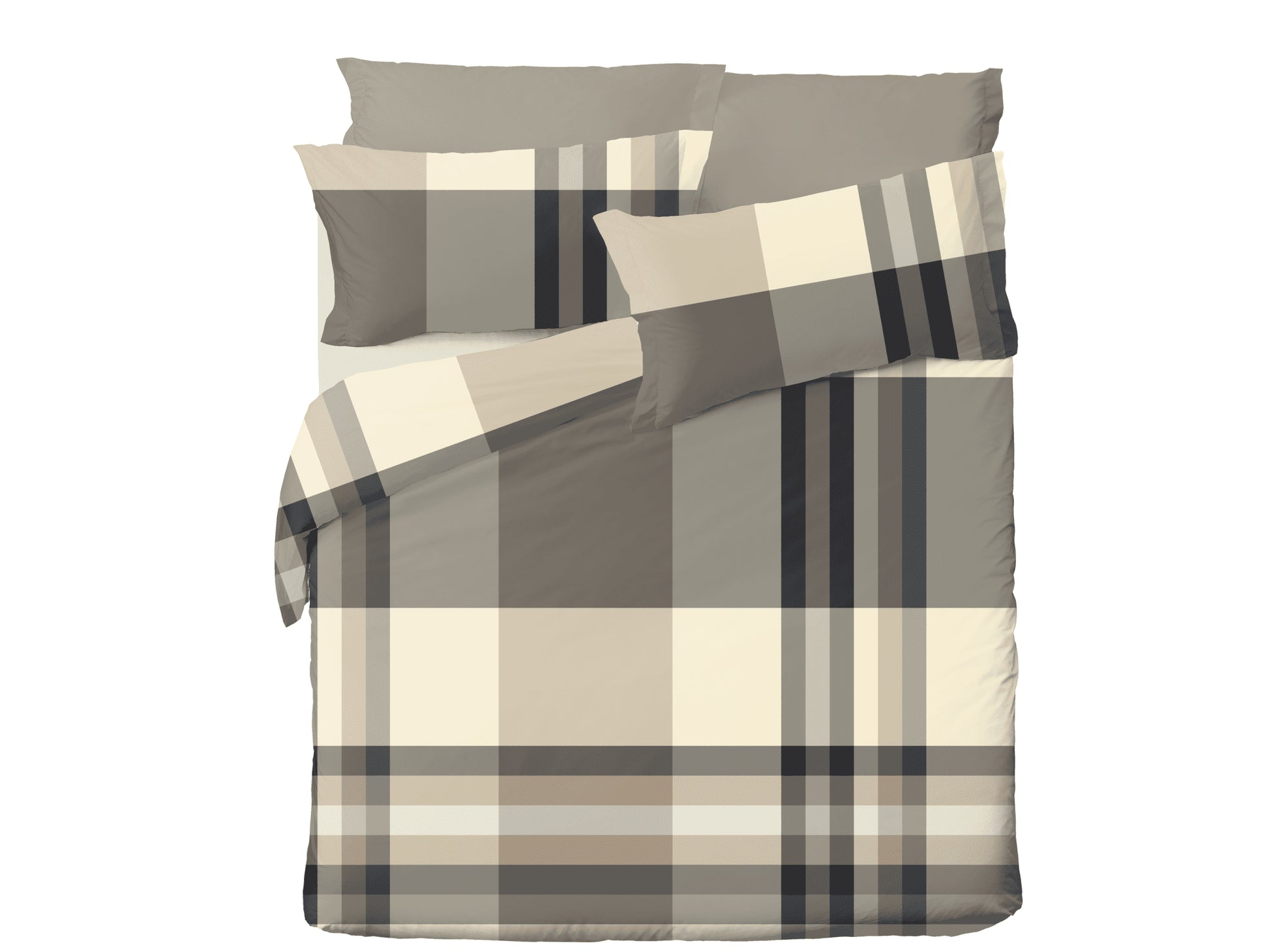 Parure Lenzuola Bossi tinto Filo con motivo scozzese, composto da Lenzuolo sopra e da due federe. Abbinabile con il lenzuolo sotto con angoli tinta unita Bossi Color acquistabile separatamente.