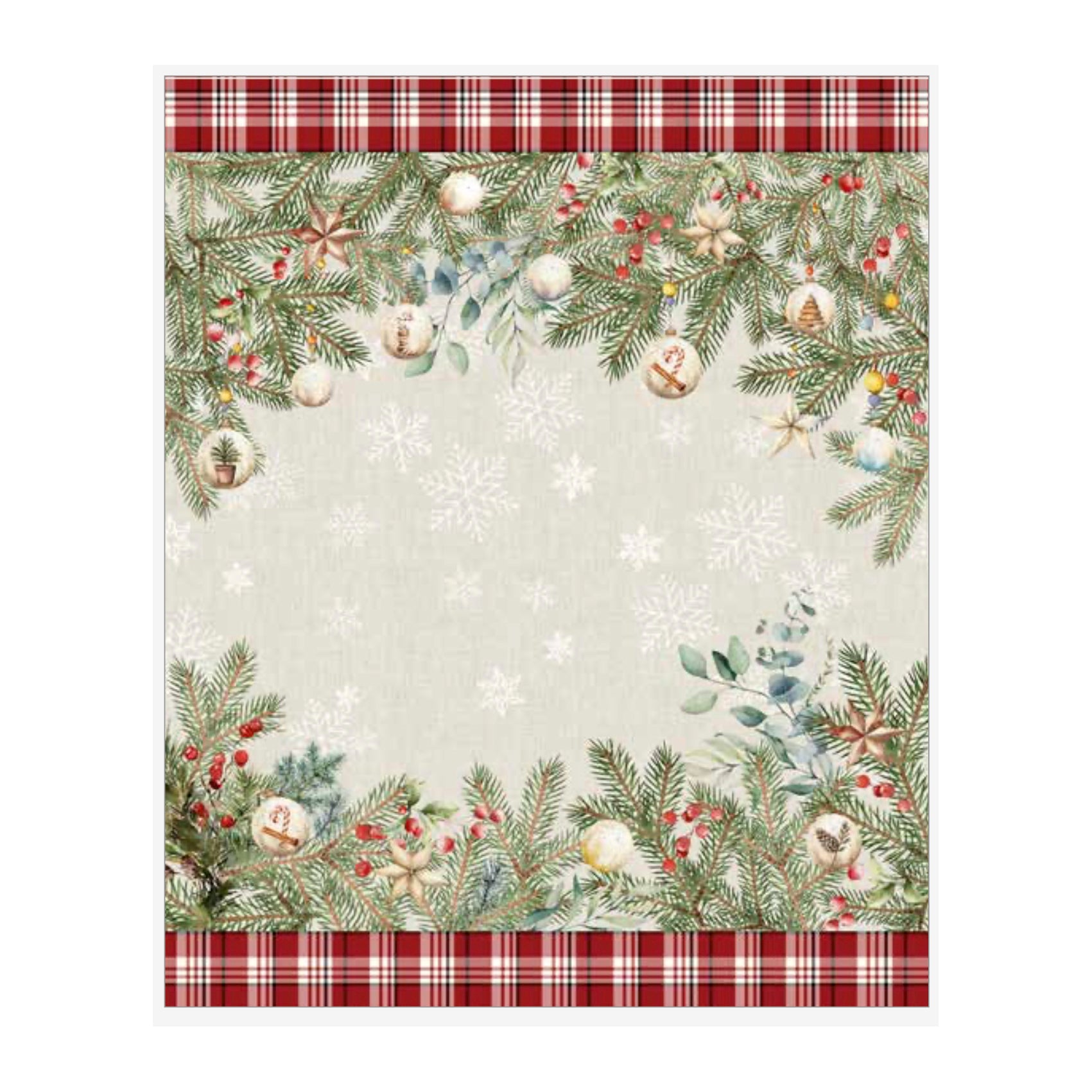 La stampa natalizia con motivi tradizionali e dettagli raffinati crea un’atmosfera accogliente e festosa, ideale per il soggiorno o la camera da letto durante le feste.
