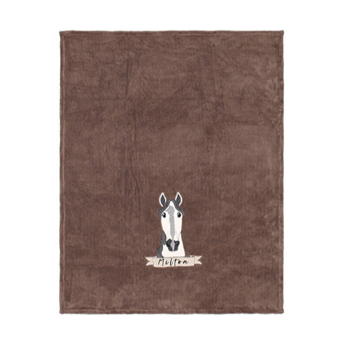 Le applicazioni ricamate in tessuto scamosciato e la morbida criniera del cavallo in pelliccia donano un tocco distintivo che celebra la bellezza e l’eleganza del mondo equestre. Un accessorio raffinato, perfetto per coccolarti sul divano, arricchire il letto o arredare con stile la tua casa.