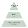 La fragranza Sapin Givré cattura la freschezza dei boschi innevati, aprendo con note balsamiche di eucalipto e cipresso, seguendo un cuore aromatico di pino resinoso, e concludendo con un fondo caldo e avvolgente di cedro e patchouli. Il risultato è una scia intensa, rigenerante e raffinata, che evoca natura, pulizia e silenziosa eleganza.