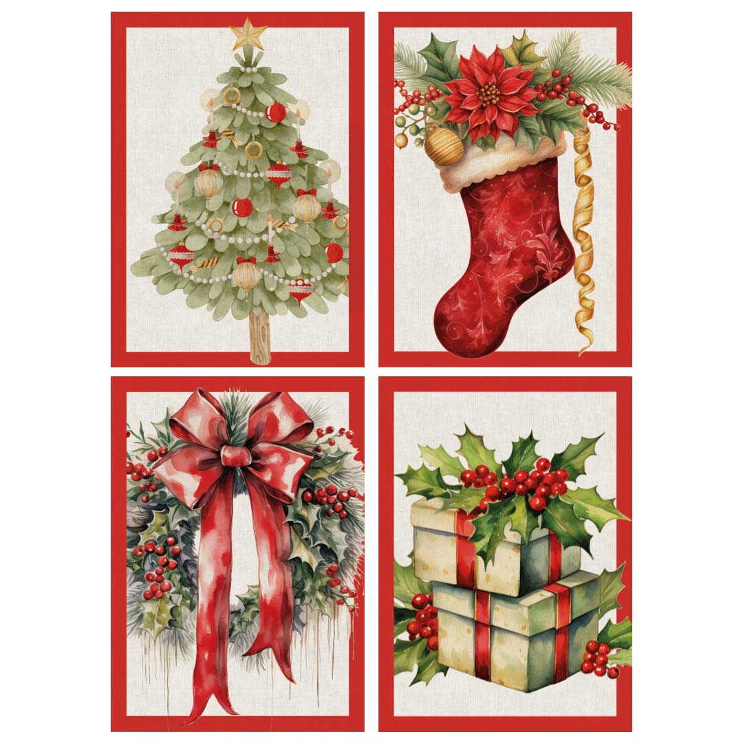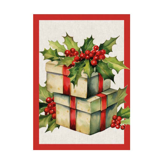 Strofinaccio in cotone con stampa digitale natalizia raffigurante decorazioni tipiche delle feste. Colorato, resistente e perfetto per aggiungere un tocco di atmosfera natalizia alla tua cucina.