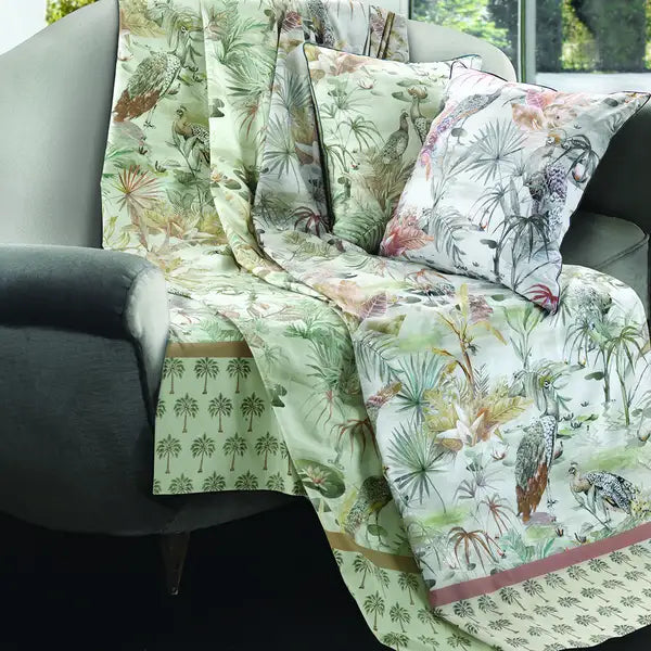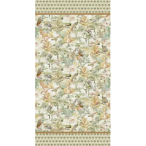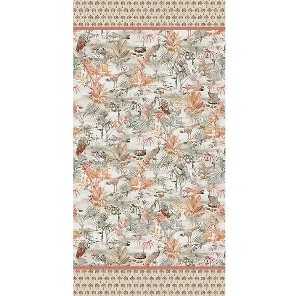 Regala freschezza e leggerezza agli spazi con il Telo Arredo Calma della Collezione Segreti di Gabel 1957. La sua inedita stampa tropicale, realizzata con tecnica digitale su puro cotone pettinato, trasporta subito in atmosfere esotiche e rilassanti.