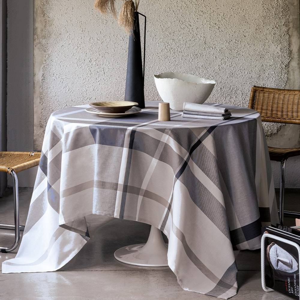 Tovaglia in puro cotone tinto filo pettinato con motivo scozzese. Il tratto caratteristico dei tessuti Bossi è dato dalla tintura del filato. Ciò significa che i motivi sono ottenuti grazie alla tessitura di filati tinti, anziché dalla stampa su un tessuto greggio. In questo modo i colori sono più intensi, penetrano più a fondo e durano più a lungo, anche dopo anni di lavaggi. Inoltre i disegni sono più nitidi e identici su entrambe le facce del tessuto.