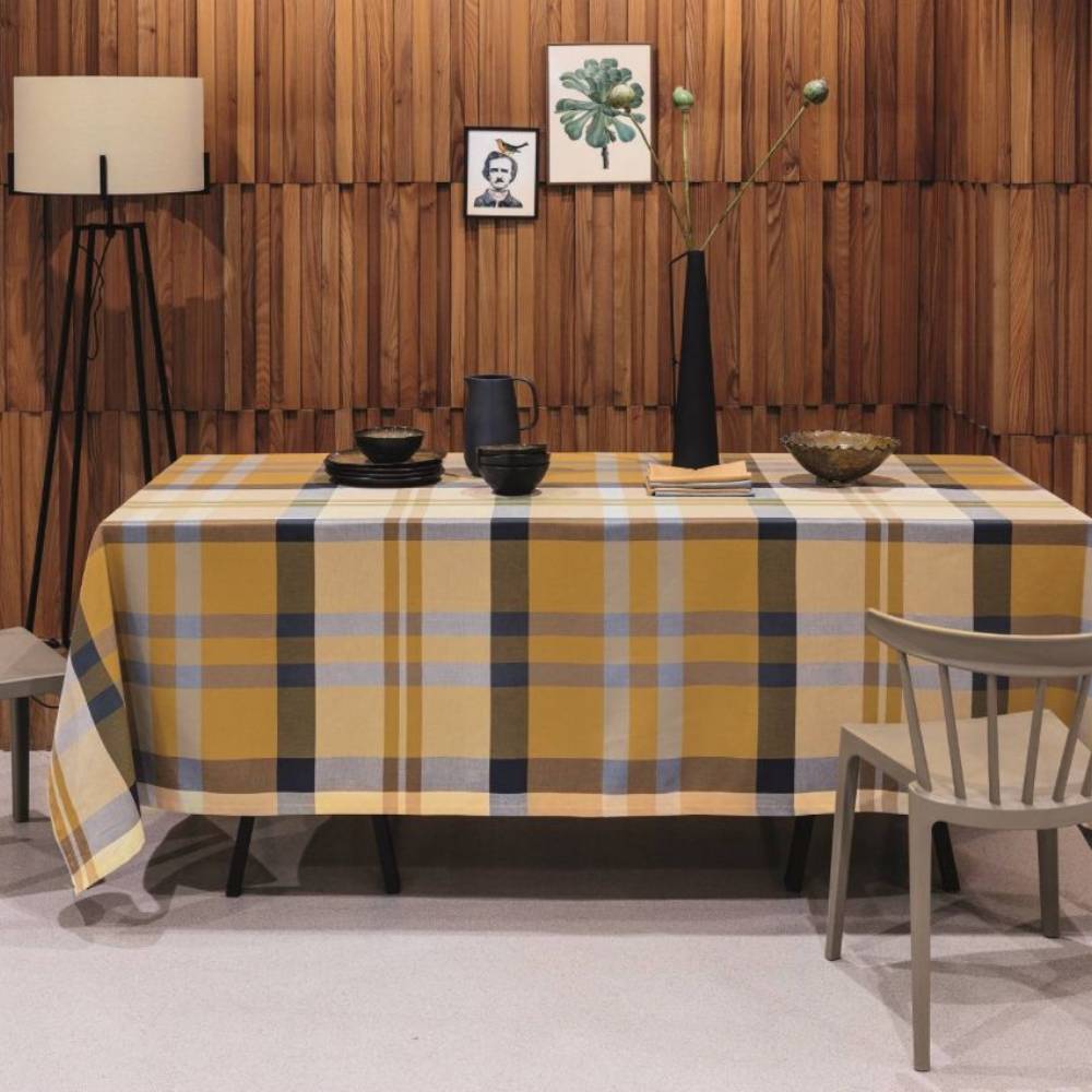 Tovaglia in puro cotone tinto filo pettinato con motivo scozzese. Il tratto caratteristico dei tessuti Bossi è dato dalla tintura del filato. Ciò significa che i motivi sono ottenuti grazie alla tessitura di filati tinti, anziché dalla stampa su un tessuto greggio. In questo modo i colori sono più intensi, penetrano più a fondo e durano più a lungo, anche dopo anni di lavaggi. Inoltre i disegni sono più nitidi e identici su entrambe le facce del tessuto.