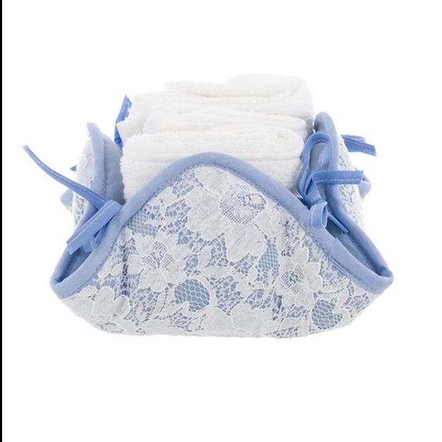 Set di lavette composto da 3 spugne 30x30 cm con bordino e cestino in tessuto di cotone con pizzo applicato. Per una casa elegante e romantica il set di lavette è perfetto per completare l'arredo bagno. Mettere a disposizione dei propri ospiti un set di spugne per le mani rappresenta un attenzione in più e cura dei dettagli. Perfetto come idea regalo. Blanc Mariclò è un marchio leader nella biancheria della casa in stile shabby chic made in Italy, le collezioni vengono disegnate dall'ufficio stile interno che reinterpreta, con un tocco di toscanicità, le confluenze degli stili country provenzale e shabby chic.