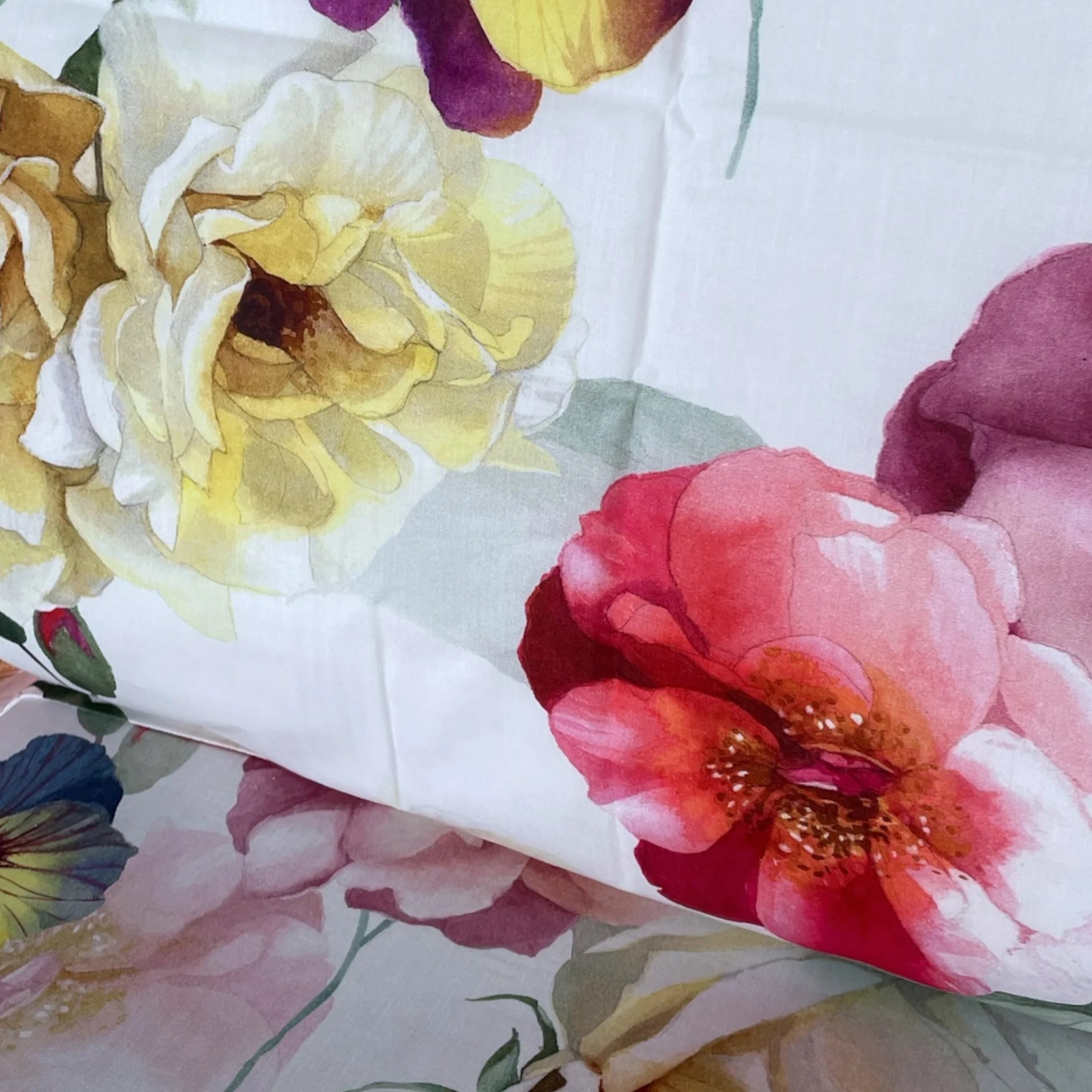 Completo Lenzuola Copriletto Matrimoniale MIRABELLO Emporium - Bloom Cascade fondo Bianco