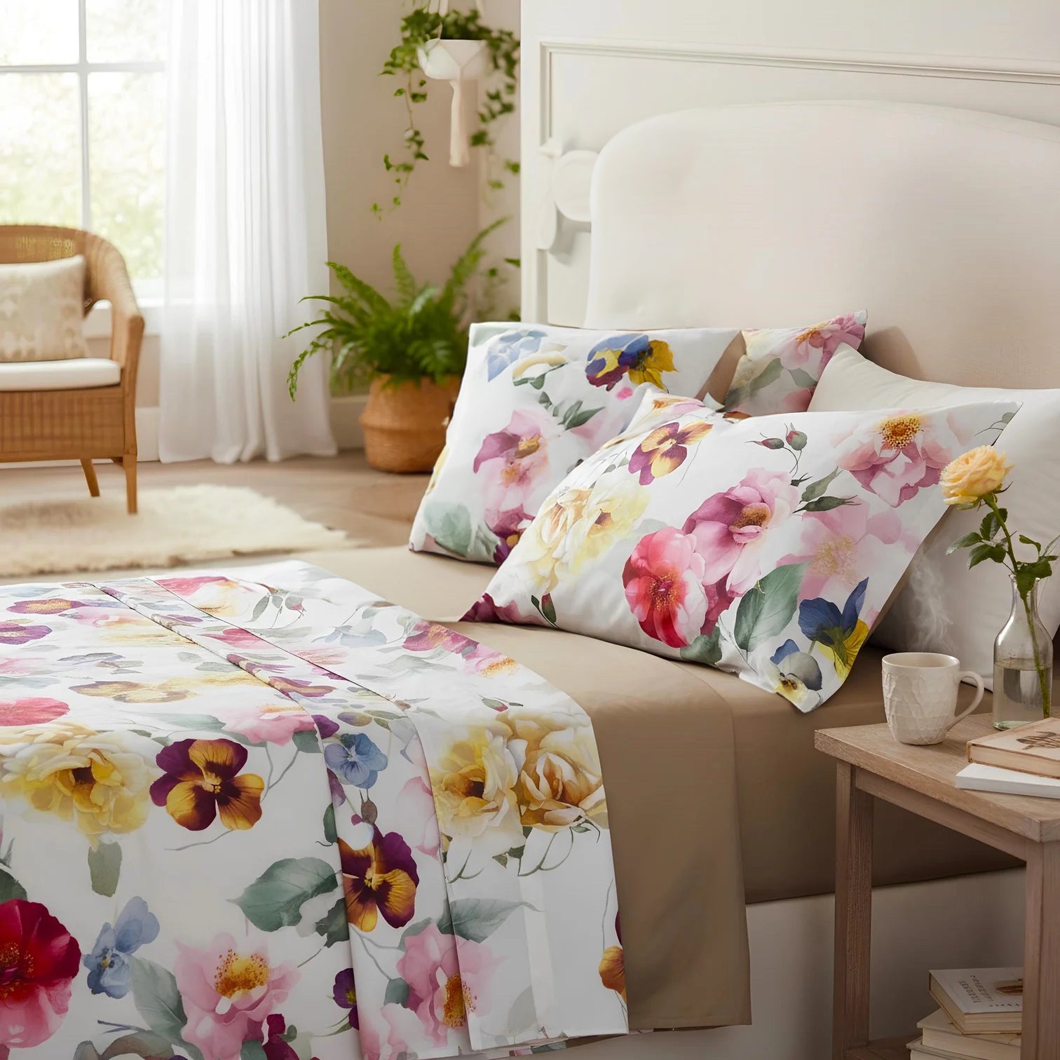 Bloom Cascade di Mirabello Carrara. La sua stampa floreale, vivace e armoniosa, dona un’atmosfera fresca e luminosa, ideale per chi desidera un tocco elegante e femminile senza rinunciare alla qualità.