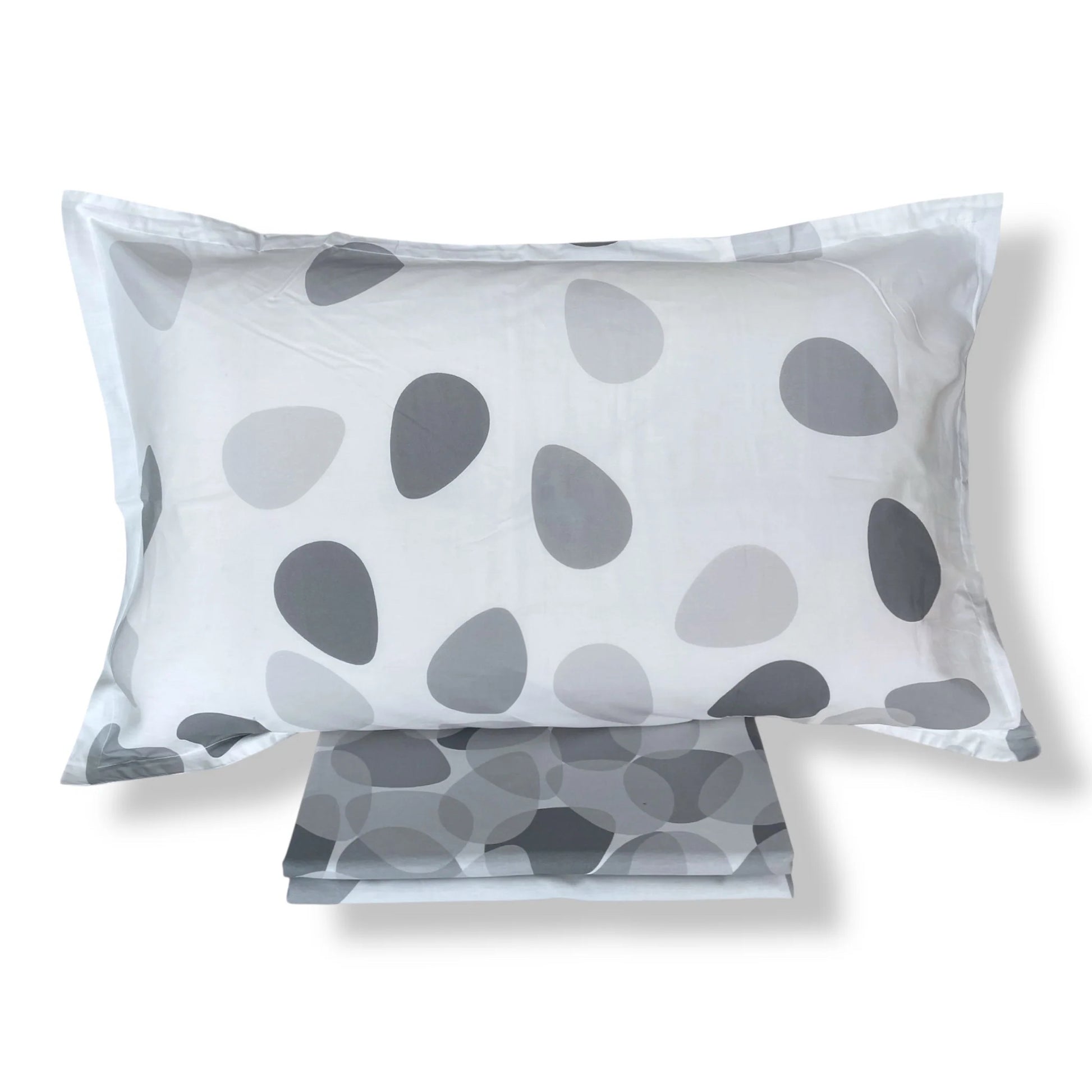 Lasciati avvolgere da uno stile moderno e raffinato con il completo lenzuola Oryza di Mirabello Carrara. La fantasia geometrica nei toni del grigio su fondo bianco trasforma il letto in un angolo elegante e contemporaneo, perfetto per chi ama design e ordine senza rinunciare alla qualità.