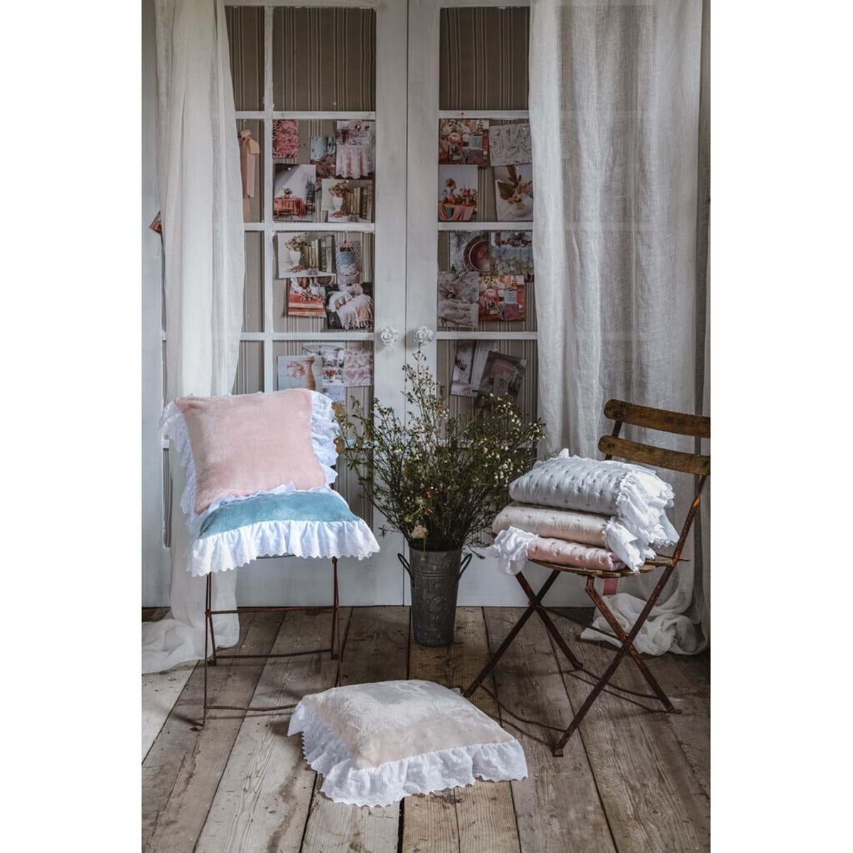 Cuscino Arredo in Velluto con Gala in Sangallo BLANC MARICLO' - Romantic Frill