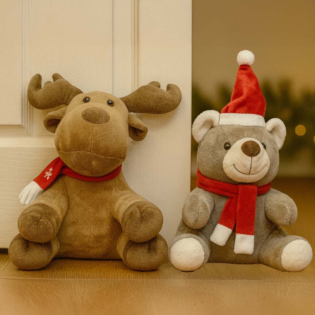 Aggiungi un tocco caldo e natalizio alla tua casa con questi fermaporta a forma di renna e orsetto, decorati con inserti in materiali diversi che richiamano il magico mood delle feste. Oltre a essere utili per mantenere le porte stabili ed evitare che la corrente le muova, diventano veri e propri complementi d’arredo capaci di rendere ogni ambiente più accogliente.