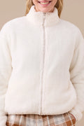 Realizzata in eco-pelliccia soffice e calda, presenta un collo alto che protegge dal freddo, una pratica zip frontale e una linea semplice ma raffinata.