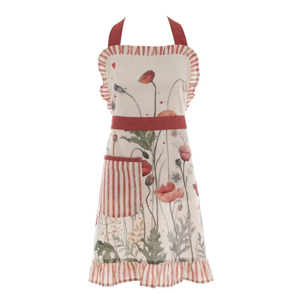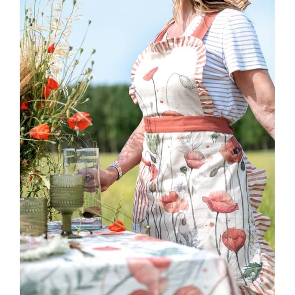 Cucina con eleganza e un tocco di romanticismo con il grembiule Coquelicot firmato Blanc Mariclò. Realizzato in 100% cotone, è decorato con una vivace stampa floreale a papaveri rossi, perfetta per portare un po’ di primavera in cucina tutto l’anno.