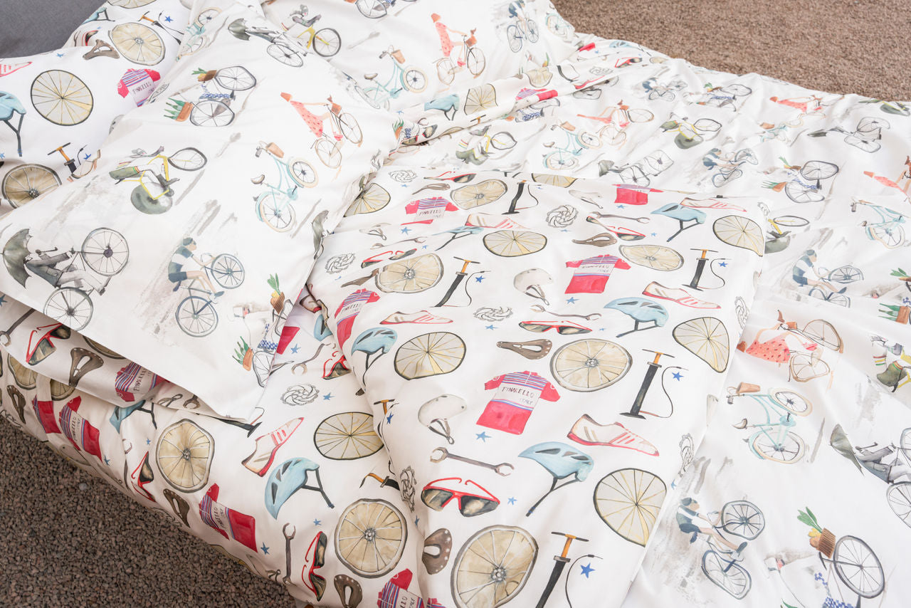 Parure Copripiumino Vuelta – Stampa Biciclette, 100% Made in Italy