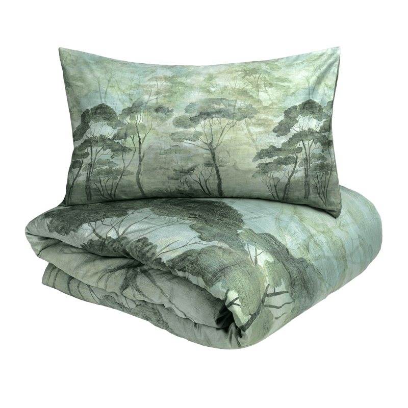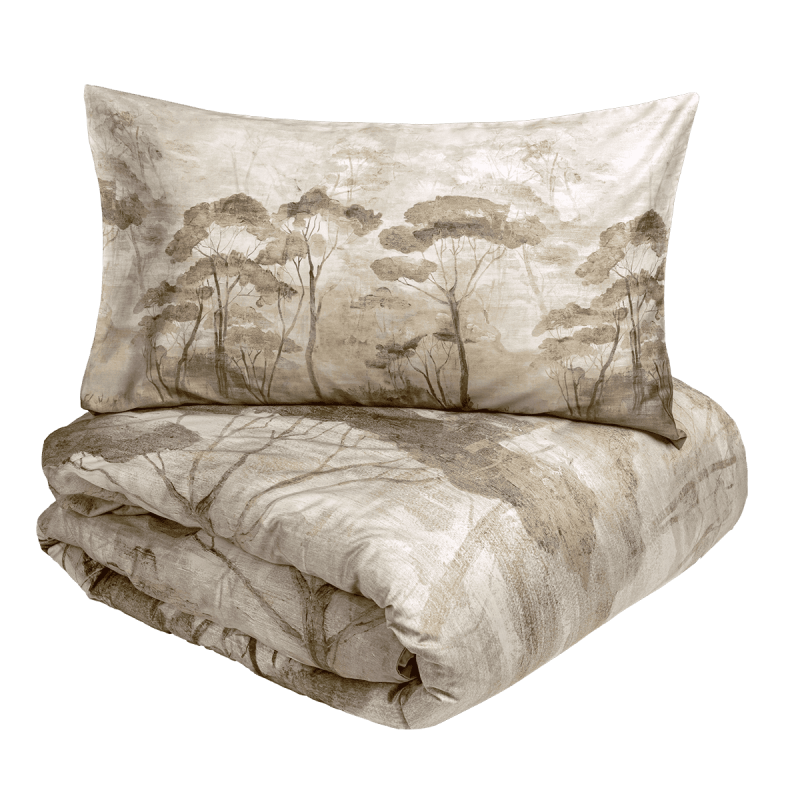 La Parure Copripiumino matrimoniale Nemora di Fazzini trasporta in un’atmosfera poetica e incantata, ispirata ai boschi mitologici abitati da ninfe e spiriti sacri. Il disegno, delicato e vibrante, rivela una texture appena percettibile che avvolge l’intera superficie del copripiumino con eleganza e armonia.