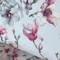 Realizzata in percalle di puro cotone 100%, la parure regala una piacevole sensazione di freschezza e setosità sulla pelle grazie alla lavorazione con filati fini, compatti e pettinati. Il copripiumino è doubleface: da un lato, una delicata stampa floreale che evoca leggerezza e armonia; dall’altro, una tinta unita sofisticata, ideale per chi ama cambiare stile con semplicità.
