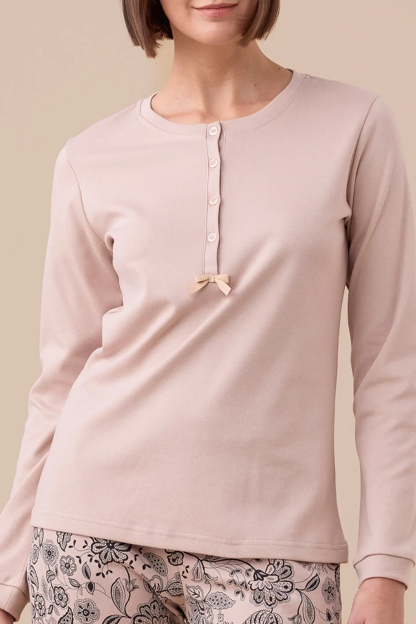 Il pigiama donna in caldo cotone – Trim è l’alleato perfetto per le serate più fresche. Realizzato in morbido e confortevole cotone caldo, unisce comodità e stile.