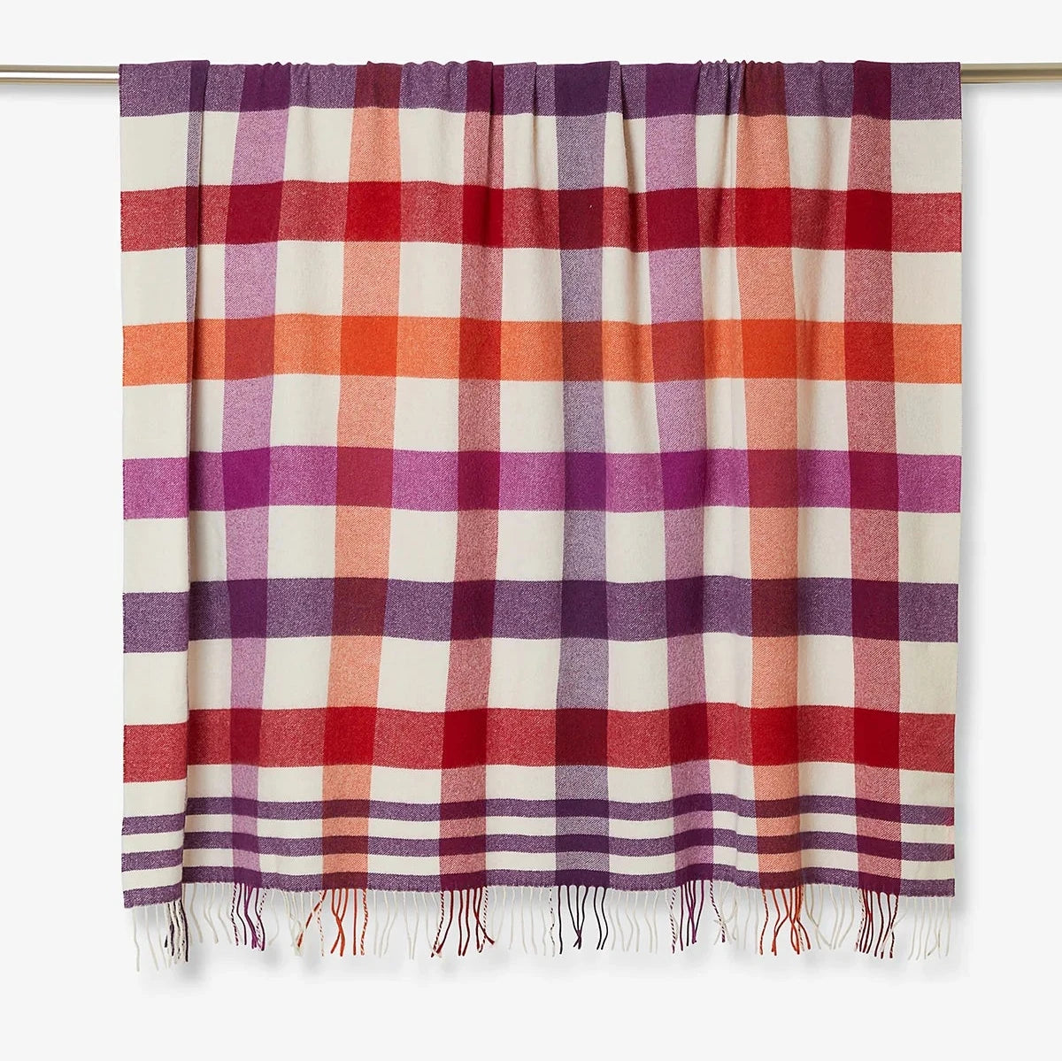 Plaid a Quadri Misto Lana con Frange Multicolore CECCHI E CECCHI - Nathalie Rosso