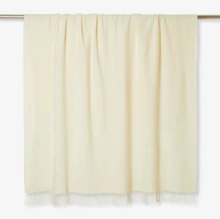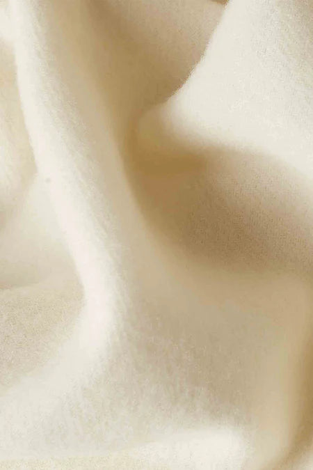 Plaid in lana merinos con Frange in colore bianco avorio.