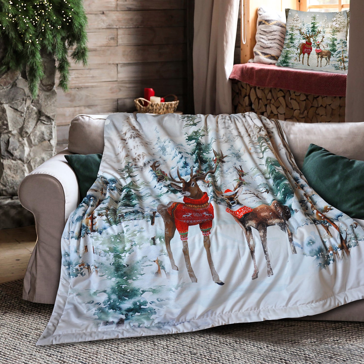 Appartenente alla linea Velluti di Casa Anversa, presenta una stampa montana e natalizia raffinata, perfetta per arredare con stile salotti, camere da letto o chalet di montagna.