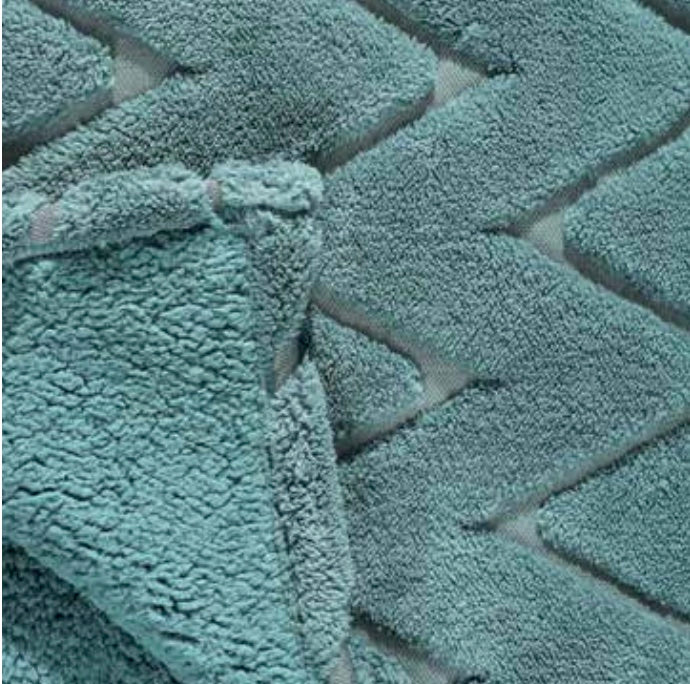 Realizzato in Sherpa jacquard da 320 gsm con retro in Sherpa tinta unita da 280 gsm, regala una piacevole sensazione di calore e comfort, perfetta per i mesi più freddi.